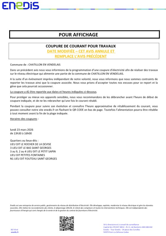 Report coupure d’électricité au 23 mars 2026